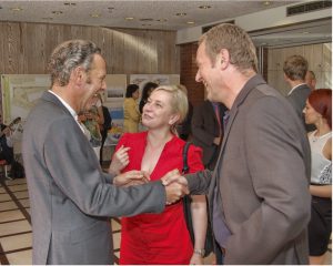 Mein Glück: Tolle Typen mögen mich. Hier beim Empfang zur Eröffnung meines neuen Büros in einer Gründerzeit Villa 2012 mit der heutigen Bürgermeisterin der Stadt Frechen, Susanne Stupp, und dem leider früh verstorbenen Wirtschaftsförderer Frank Schöddert.